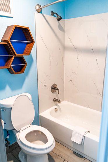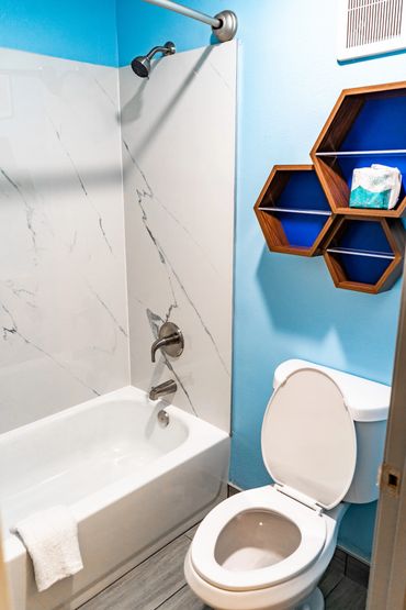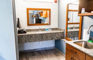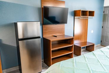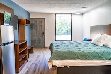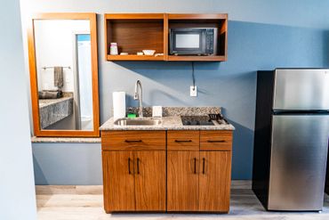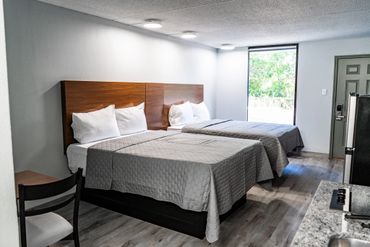 King and Double Queen rooms meet your needs with a kitchenette featuring a cooktop and microwave along with a spacious bathroom and combined living area.